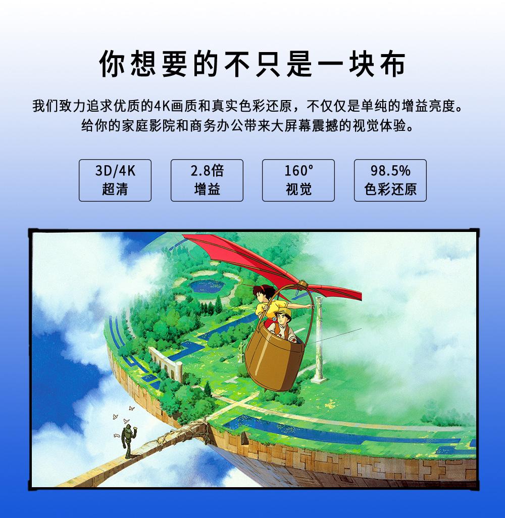 屏幕材质:黑色膜层光棚+成像基材幕面
